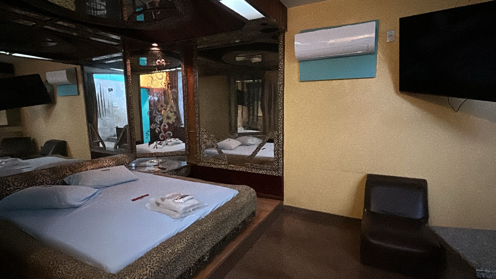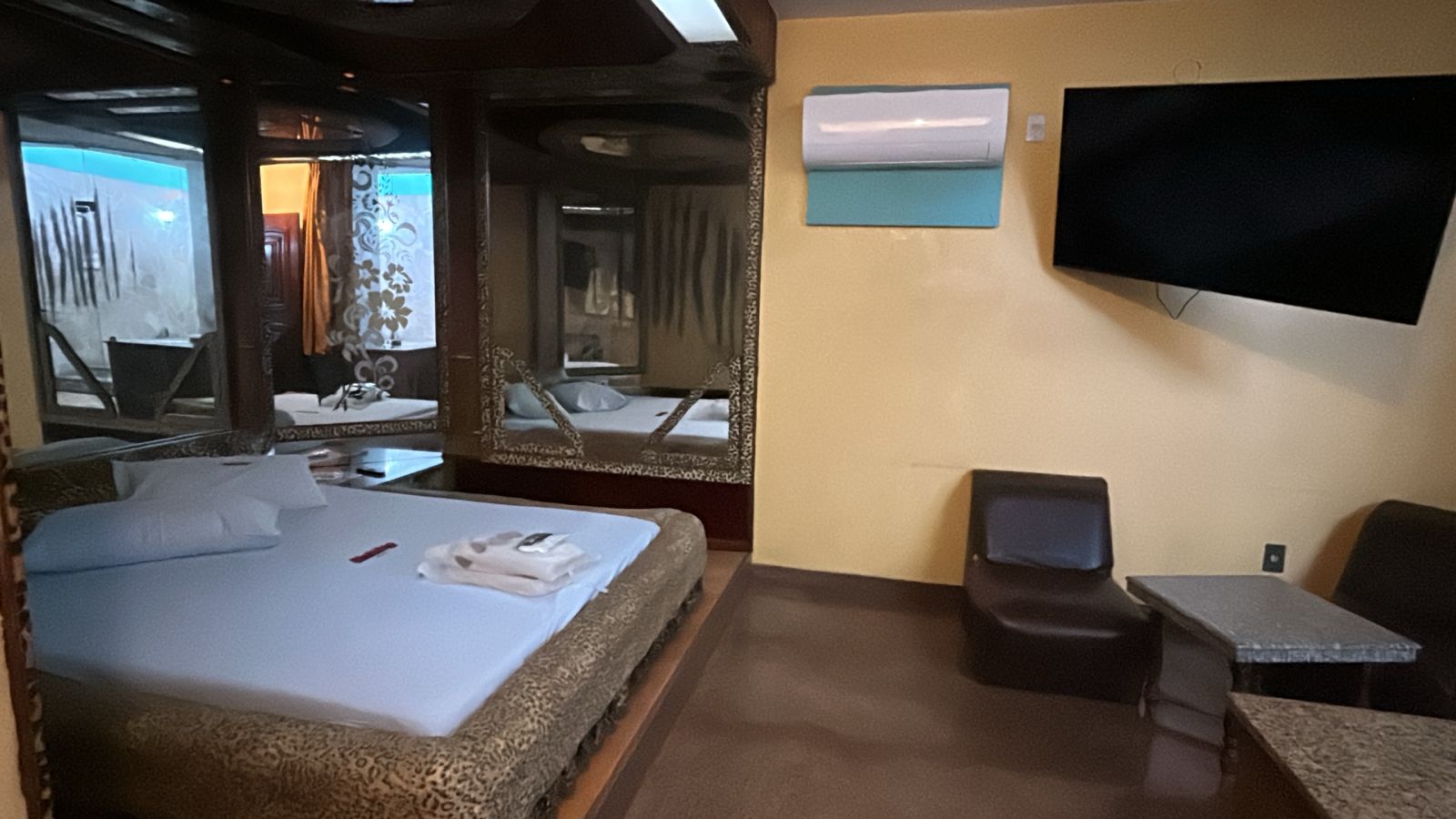 Ar-condicionado, Frigobar, Ducha, Garagem Privativa, Wi-Fi, Smart TV, Canais eróticos, Hidromassagem, Poltrona Erótica, Saleta para Refeições.
